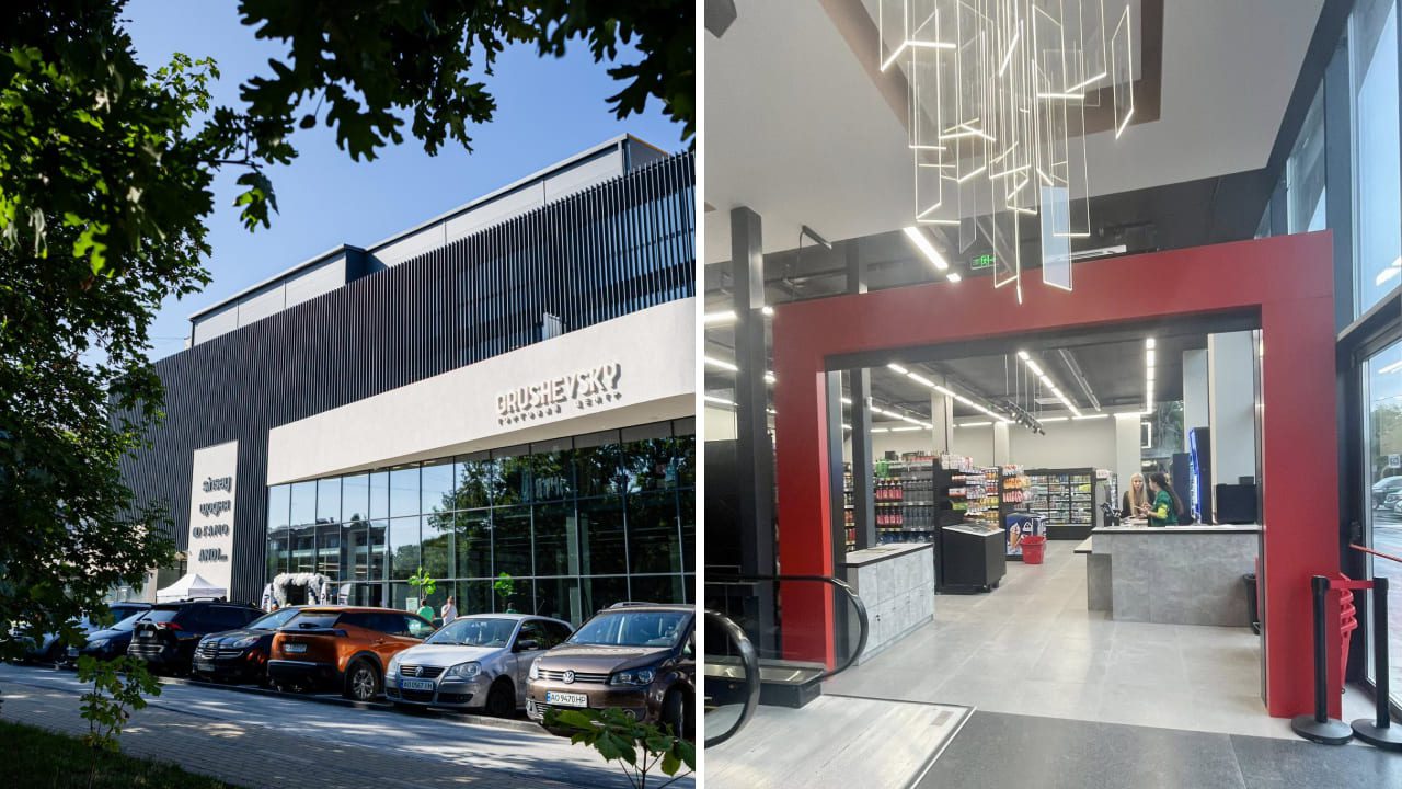 Чотириповерховий ТЦ Grushevsky має загальну площу 4 тис. кв. м. Його збудовано за проєктом архітектурного бюро Mytrichko Syma. Загальні інвестиції в об’єкт склали 5 млн доларів.