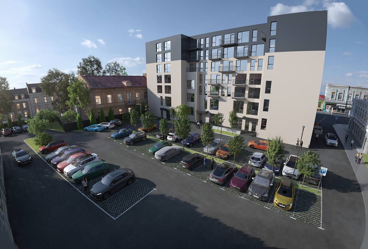 Об’єкт матиме 7 поверхів, на першому, другому, третьому та четвертому поверхах розмістять торговельні приміщення, магазини та офіси, а на інших — апартаменти. Також планується паркінг на 50 автівок.