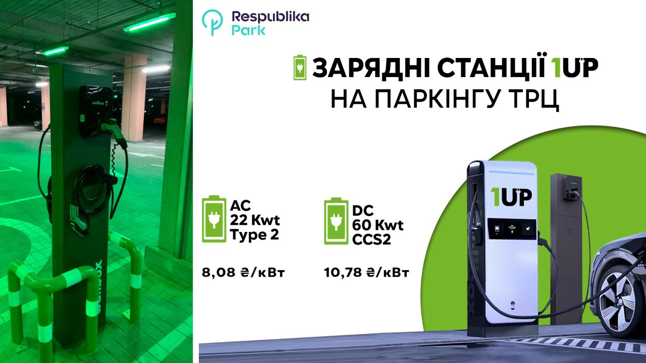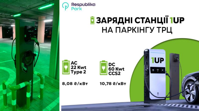 На паркінгу київського ТРЦ Respublika Park запрацювали зарядні станції для електромобілів.