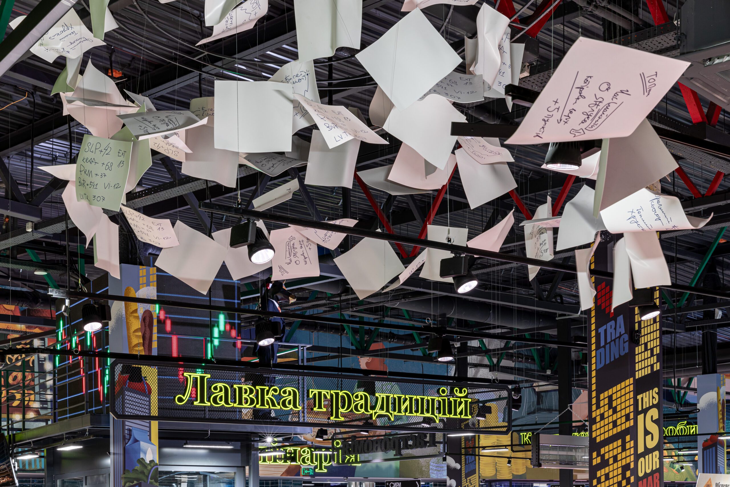 Площа нового магазину становить 1483 кв.м, команда “Сільпо” присвятила стиль супермаркету біржі.