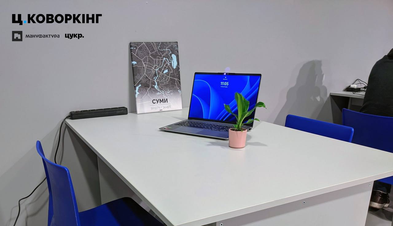 23 грудня відбувся тестовий запуск Ц.Коворкінгу в ТРЦ Мануфактура у Сумах. Простір розміром 300 кв. м забезпечений безперебійним живленням та постійним інтернетом.