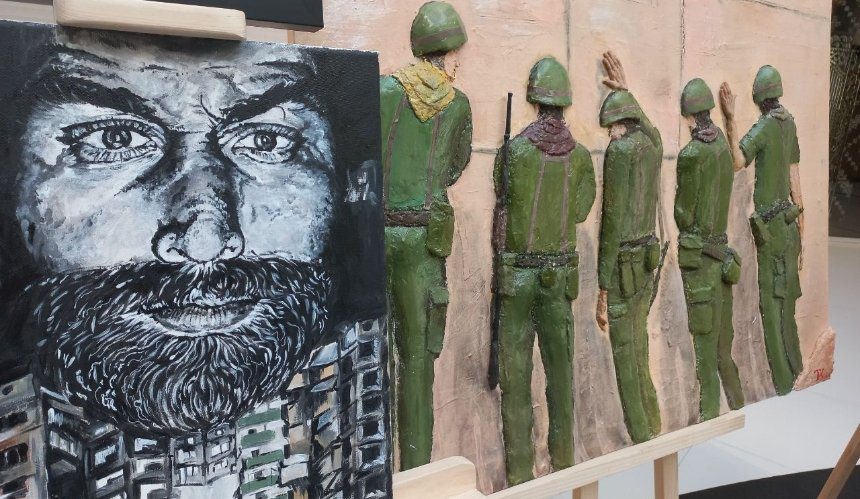 На виставці представлені роботи художників, які під вибухи та виття сирен, ховаючись від смертельного заліза у підвалах, відтворювали емоції та жахливі реалії сьогодення.