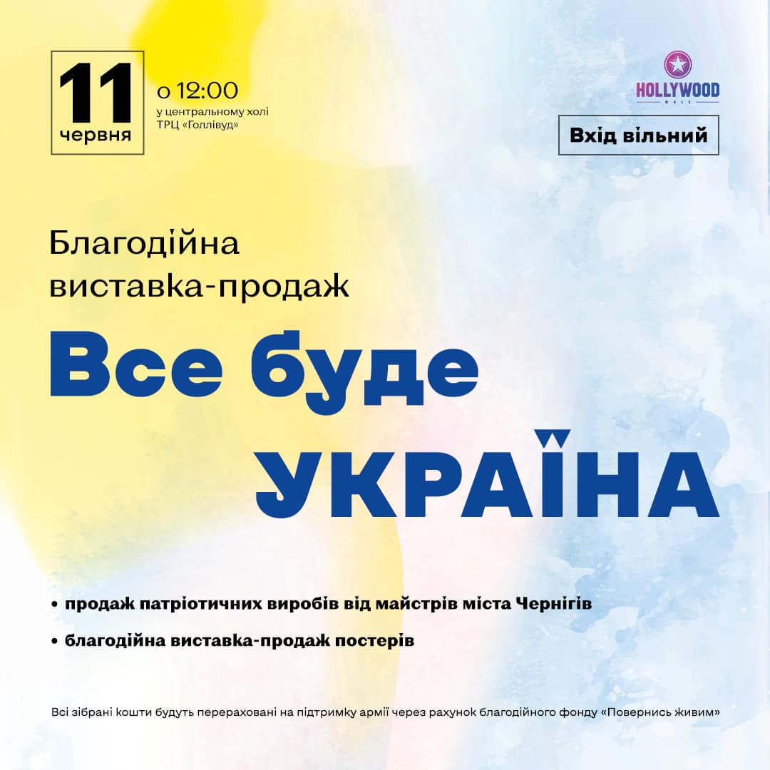 11 червня у чернігівському ТРЦ Hollywood Mall пройде благодійна виставка «Все буде Україна».