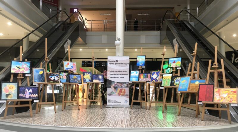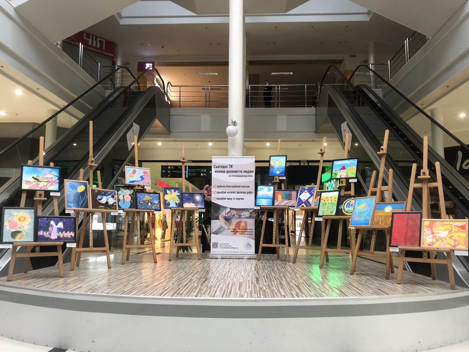 З ініціативи Міжнародного Благодійного Фонду «Без кордонів» у ТРЦ Мегамолл у Вінниці триває благодійна виставка дитячих картин.