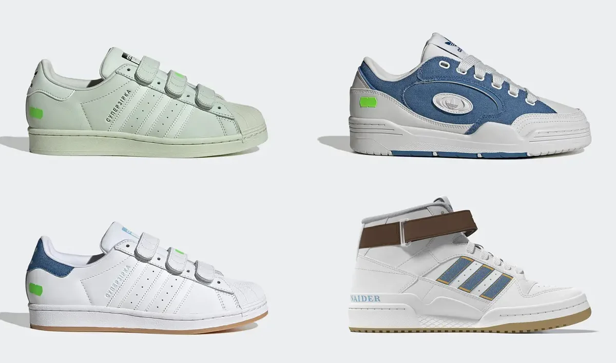 Взуття в колекції включає оновлені культові моделі adi2000, Forum Mid та Superstar.