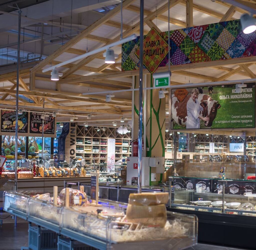 Нагадаємо, що загальна площа «Сільпо» складає 6000 кв. м. Супермаркет складається з десятків продовольчих відділів, великого фуд-містечка, власної кондитерської, хлібної майстерні Boulangerie та ін.