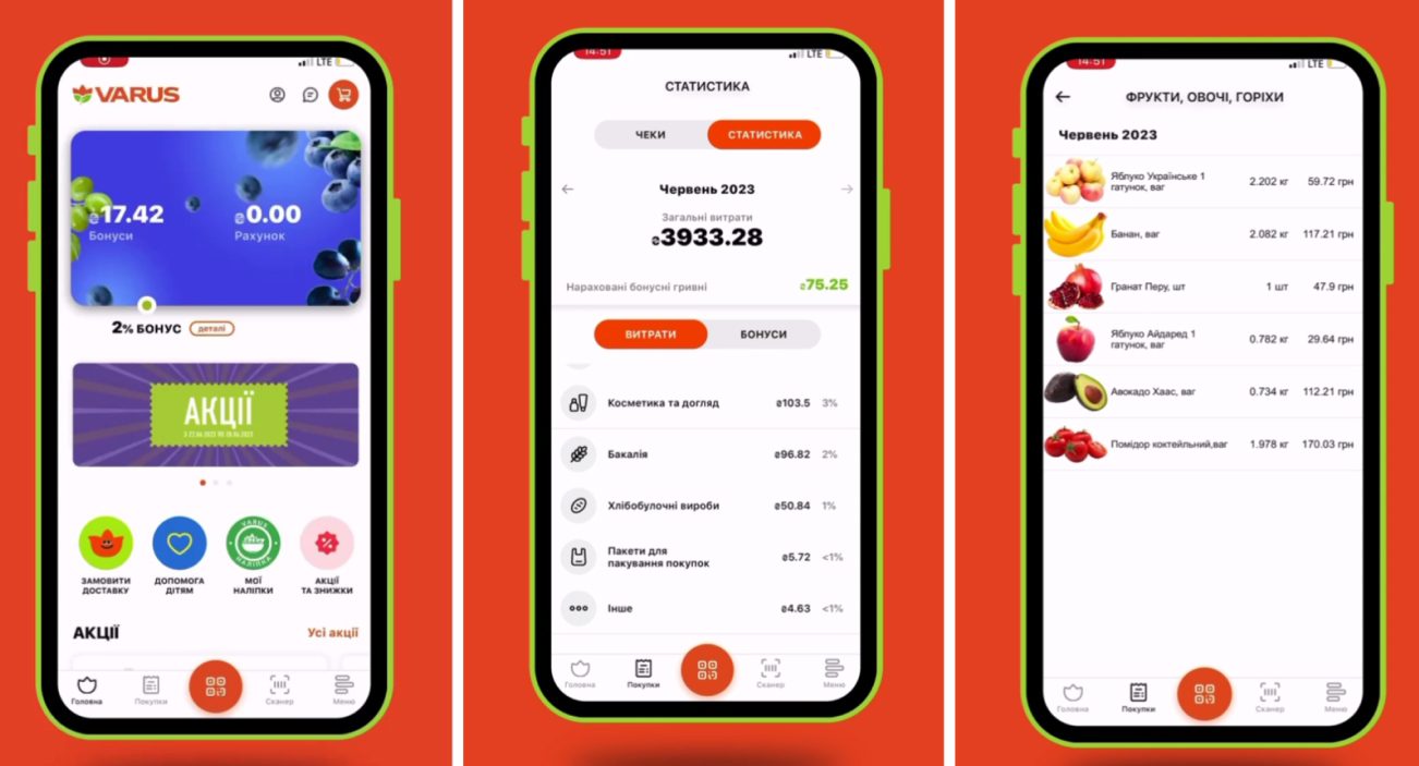 Мережа VARUS одна з перших серед торговельних мереж впровадила формат відображення витрат у мобільному додатку. Зазвичай цю практику використовують у банківських сервісах, але клієнти супермаркетів також хочуть розуміти динаміку своїх витрат та планувати бюджет на покупки, — каже Head of Digital VARUS Дмитро Воєвода.