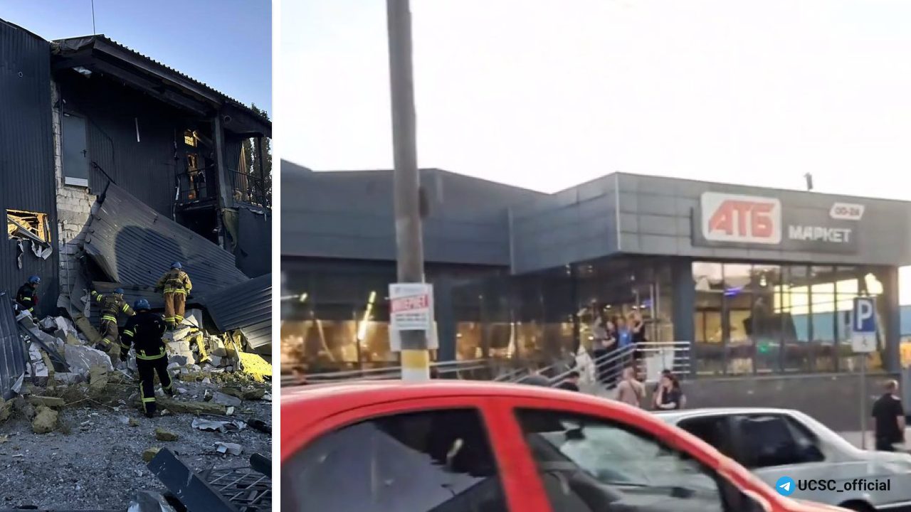 На оприлюднених кадрах видно, що пошкоджень зазнав супермаркет мережі “АТБ” та велика кількість дрібних магазинів навколо.