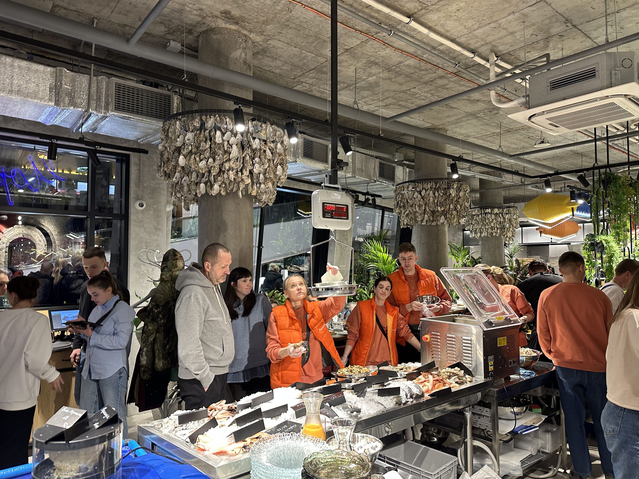 Особливістю відкриття стала устрична дегустація – команда привезла велику партію свіжих устриць та провела майстер-класи з їх правильного відкриття. Це відображає загальну стратегію компанії щодо популяризації культури споживання морепродуктів в Україні.