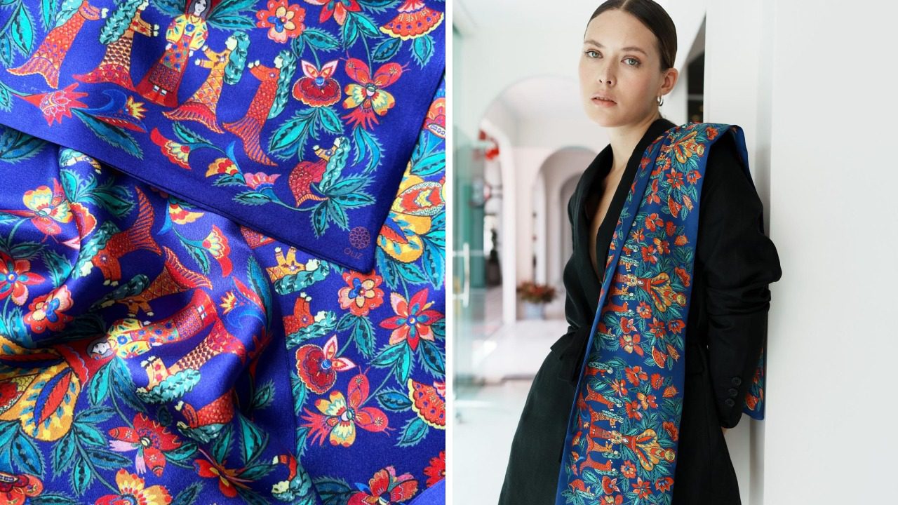 “Викрадене мистецтво”: український бренд відтворив на хустці розпис роботи вивезеної окупантами з Херсону