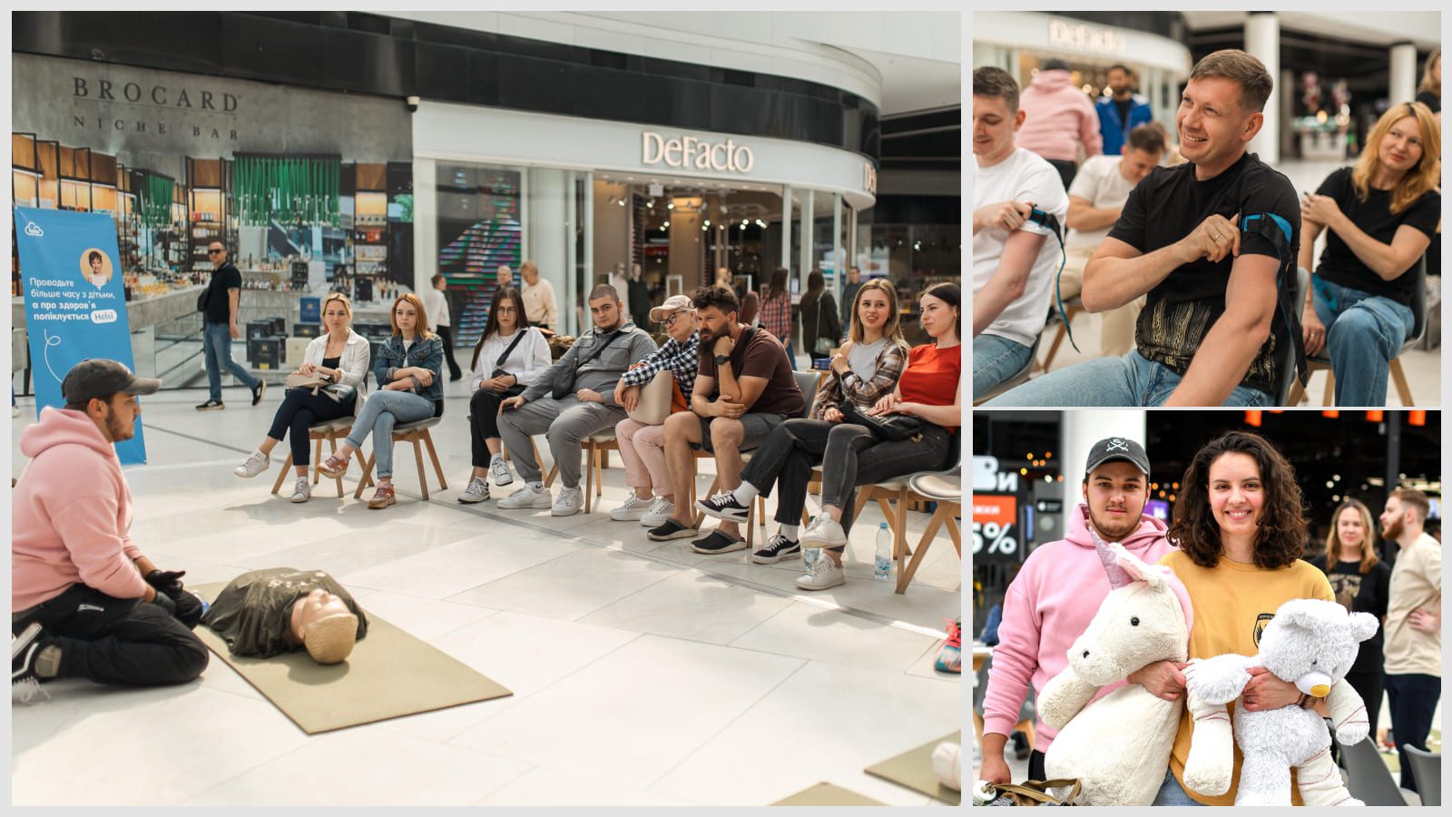 Як розповіли УРТЦ у пресслужбі торговельного центру, протягом дня в атріумі працювала інтерактивна навчальна зона. Щогодини — нова міні-сесія, на якій інструктори пояснювали і на практиці показували:
