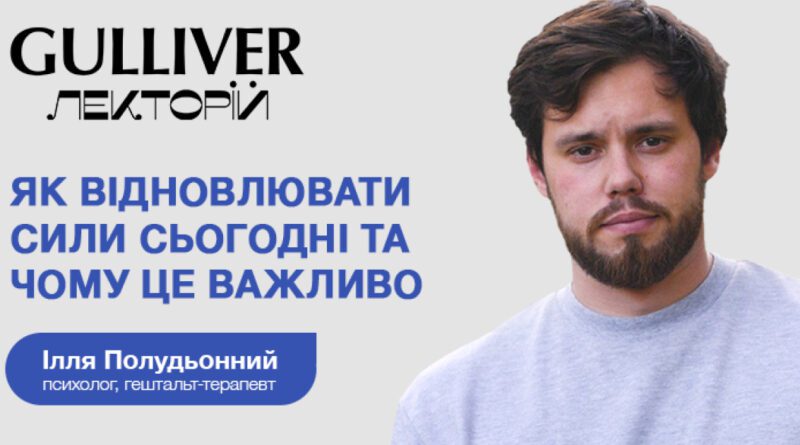 У столичному ТРЦ Gulliver пройде безкоштовна відкрита лекція "Як відновлювати сили сьогодні та чому це важливо" від психолога, гештальт-терапевта Іллі Полудьонного.