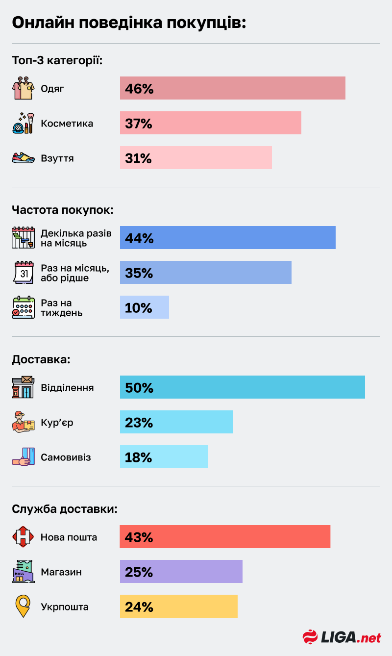 Щодо онлайн-шопінгу, тут також відзначається поступове відновлення купівельної активності, але частка покупців досі значно менша, ніж у 2021-му. За даними досліджень компанії CBR, вона становила 67% станом на квітень 2023 року, тоді як до початку повномасштабної війни цей показник був приблизно на рівні 80%.