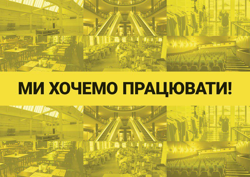 2. Зробити фотографії ваших співробітників на тлі вивісок ваших підприємств із плакатами «Ми хочемо працювати!» та 28 квітня з 12.00 розмістити ці фото на ваших особистих сторінках та корпоративних сторінках у соцмережах із загальним хештегом #мі_хочемо_працювати. Розмістити на фасадах своїх компаній, підприємств, ресторанів, спортклубів тощо. банери «Ми хочемо працювати!»